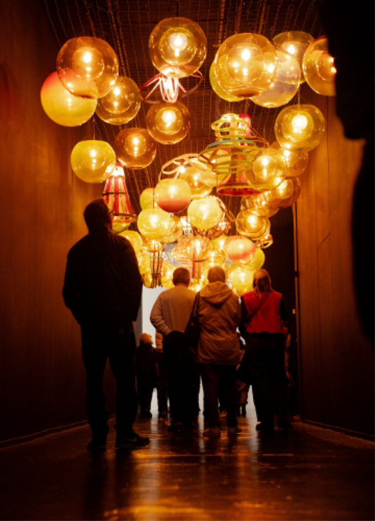 ↑ Vue de l’exposition “Pom Pom Pidou” au Tripostal à Lille dans le cadre de Fiesta 7ème édition de lille3000, © Maxime Dufour Photographies et Justine FA photographie