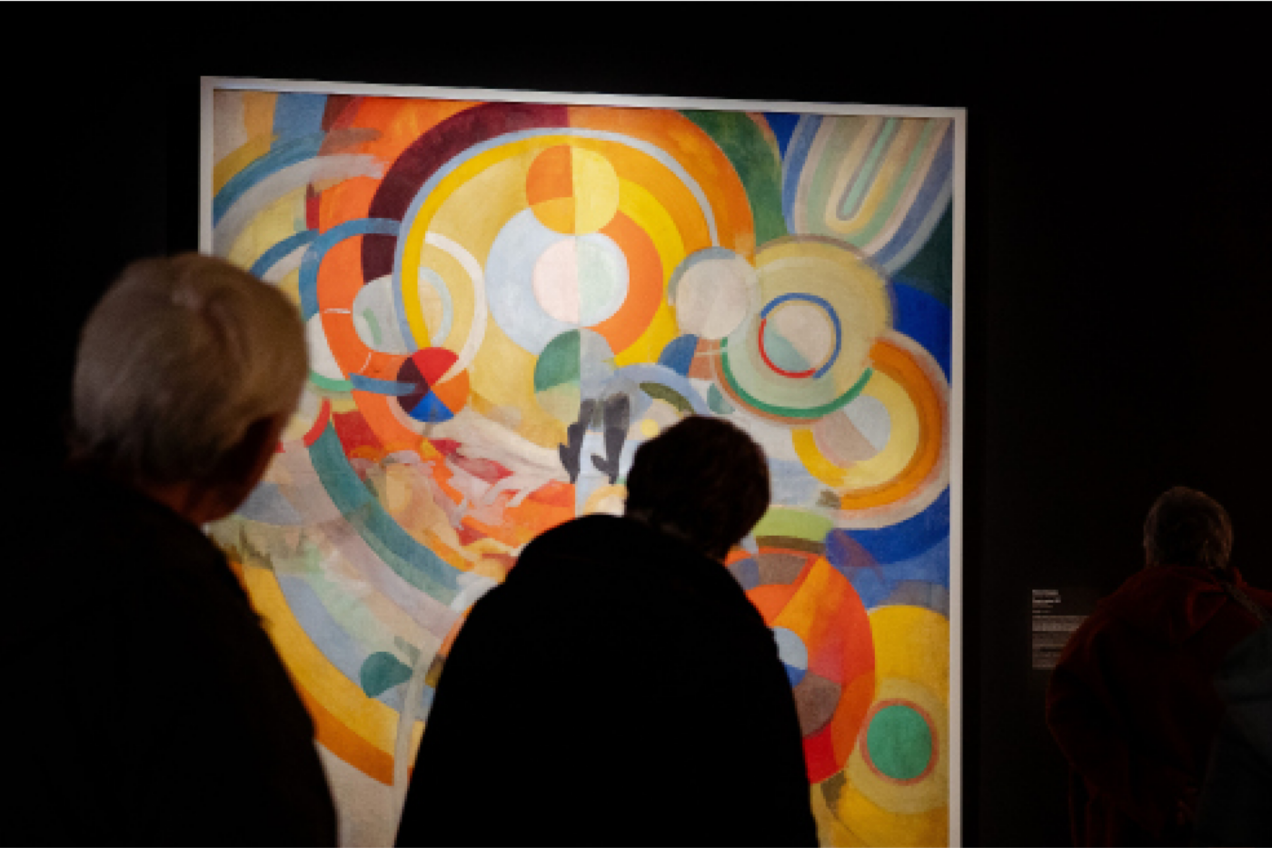 The ground floor is transformed into a museum of the avant-garde, boosted by Robert Delaunay’s colourful rhythmic paintings and the vortex paintings by František Kupka. The adventure continues with the Italian Futurists, who declared the beauty of speed, followed by Marcel Duchamp’s bold challenge to the art world, with his revolutionary ready-mades. The chronological itinerary is punctuated by contemporary counterpoints, such as designer lamps and a light projection by Icelandic artist Olafur Eliasson.