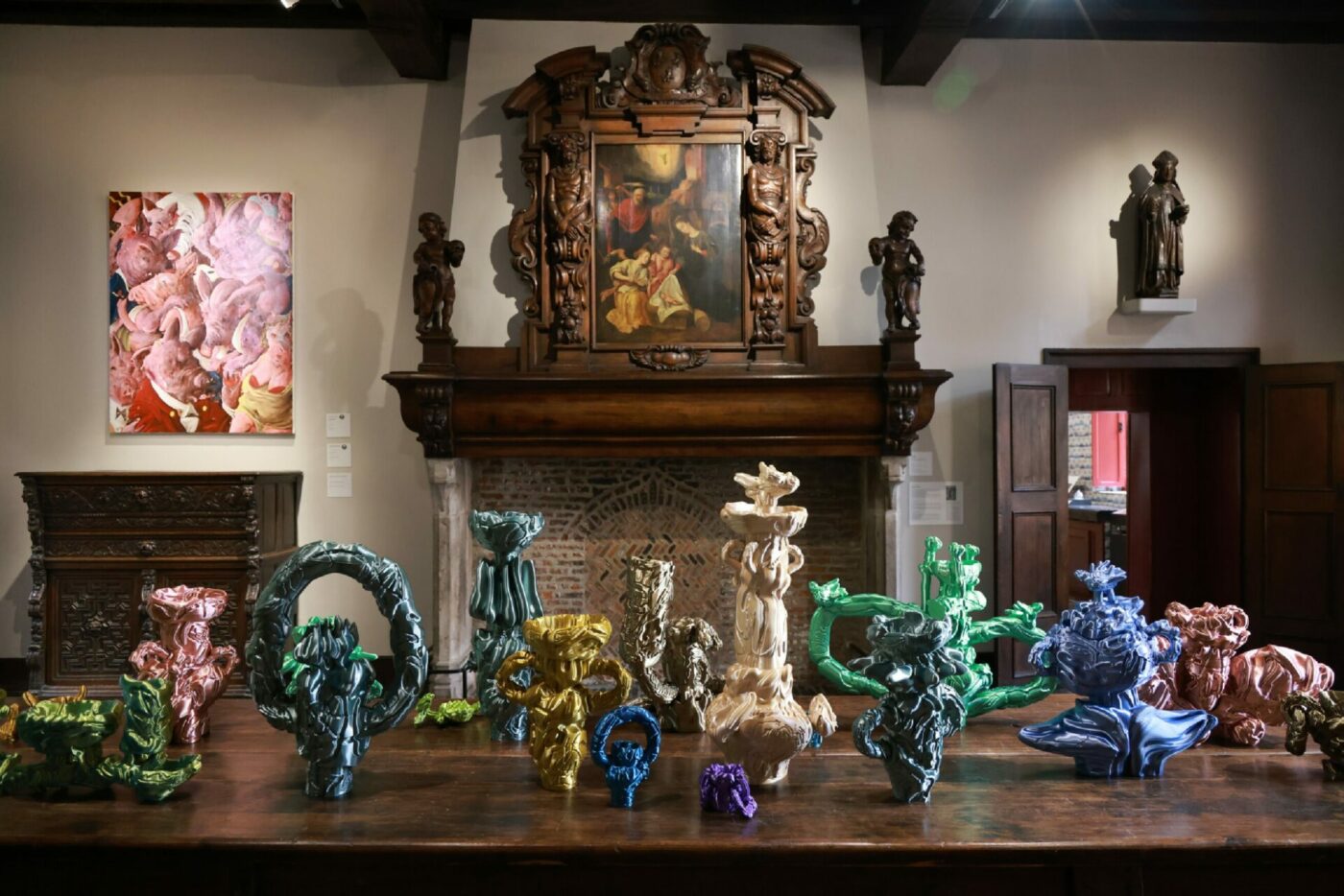 The Hospice Comtesse Museum host The Distorted Party exhibition. Formerly a religious institution offering care and shelter to those in need, the venue is an ambivalent space, which is echoed in the themes of the exhibition: celebration and reflection, chaos and beauty, distortion and clarity.