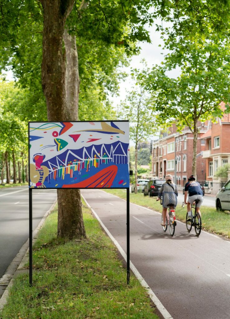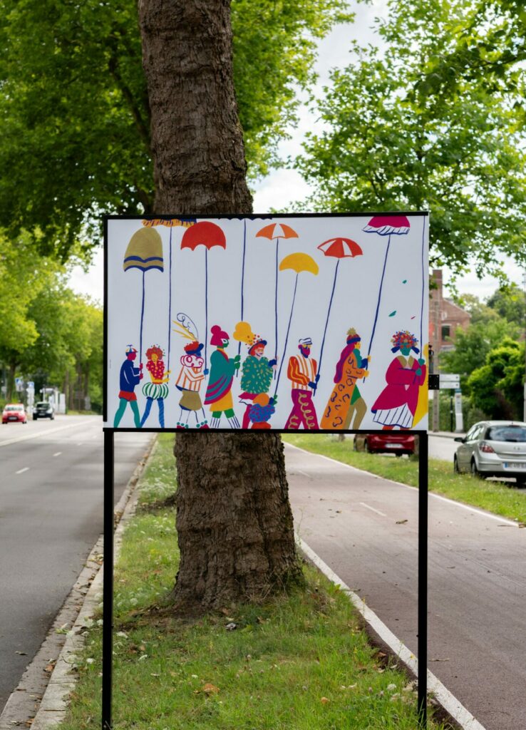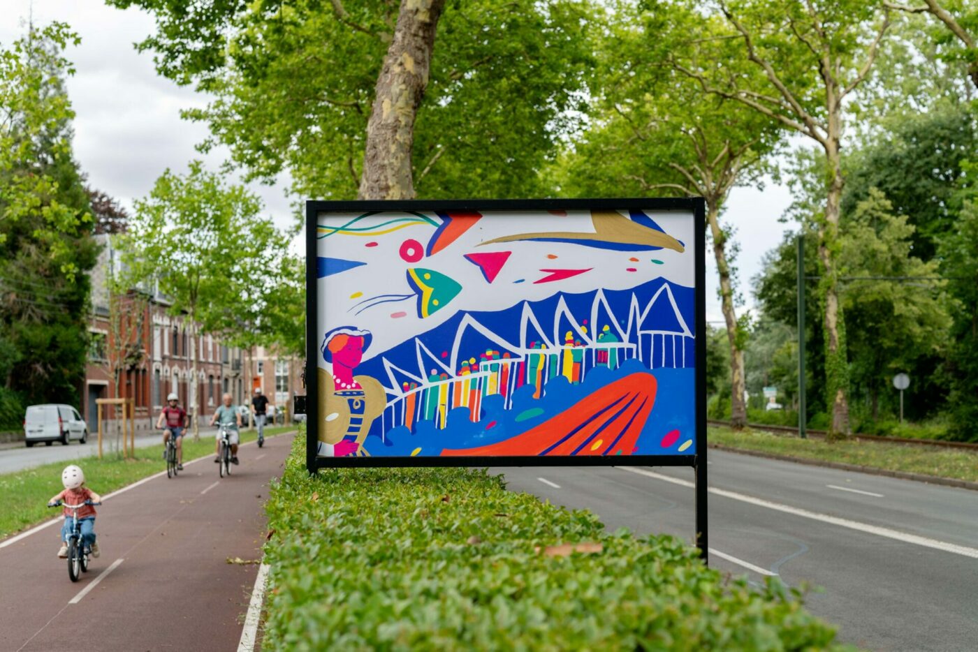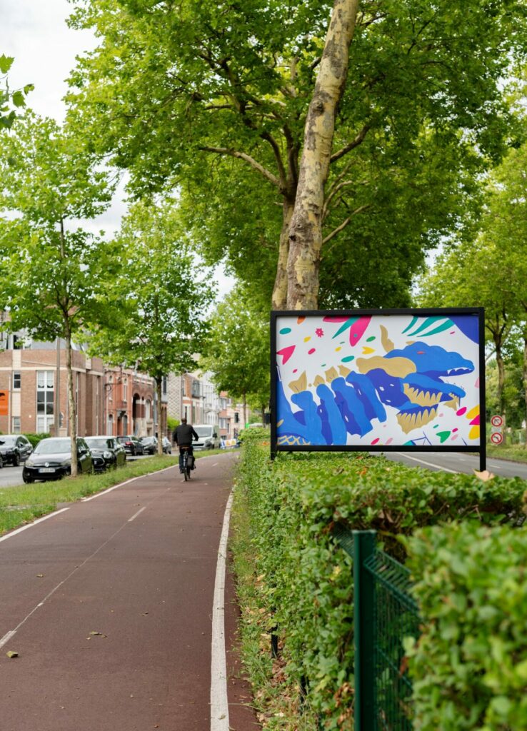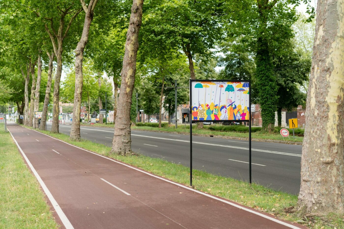 ↑ Vue de l’installation « Amoute ! » sur les Grands Boulevards à Mouvaux dans le cadre de Fiesta 7ème édition de lille3000, © Hugo Miel