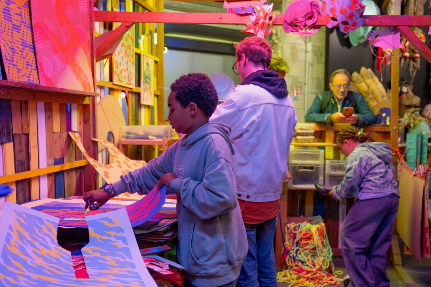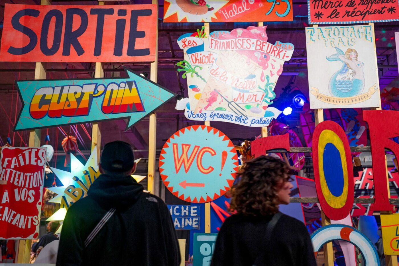 ↑ Vue de l’exposition « Institut Grand Festif » à la Gare Saint Sauveur de Lille dans le cadre de Fiesta 7ème édition de lille3000, © Justine FA photographie