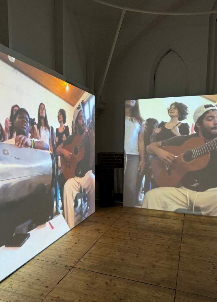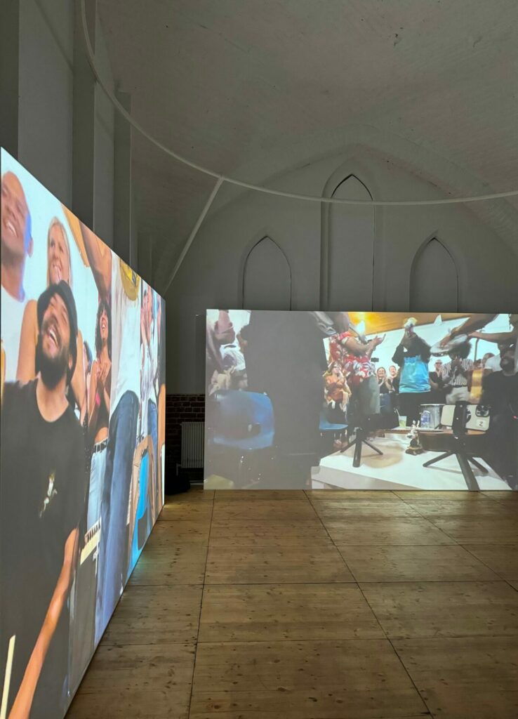 ↑ Vue de l’exposition « Meu lugar na roda » à l’Espace Croisé de Roubaix dans le cadre de Fiesta 7ème édition de lille3000, © maxime dufour photographies