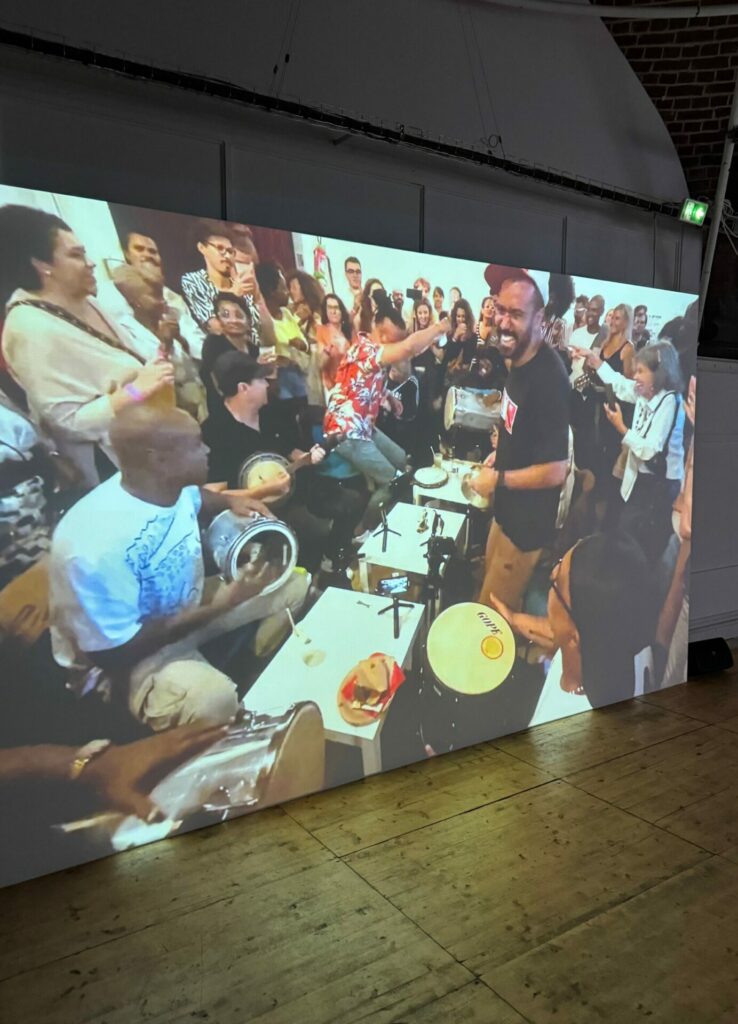 L’installation MEU LUGAR NA RODA invite le public à prendre part à la roda de samba, à danser, à se plonger au cœur de la fête brésilienne !